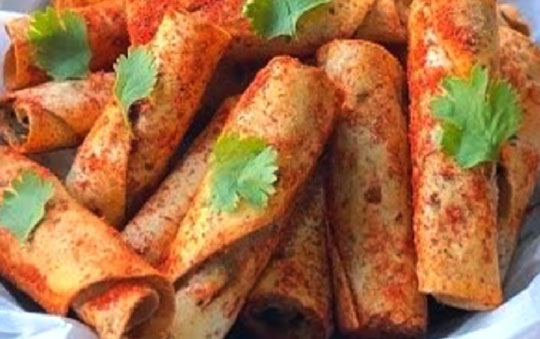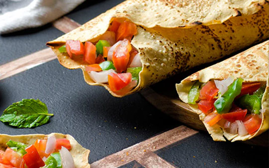(Veg/Chicken)Tandoori-spiced fillings wrapped in crispy papad, drizzled with creamy garlic yogurt.