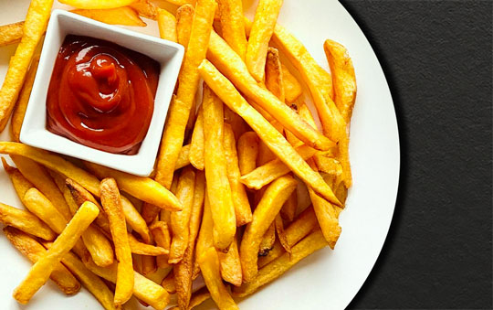 Classic shoestring fries, lightly salted and served piping hot with ketchup.
