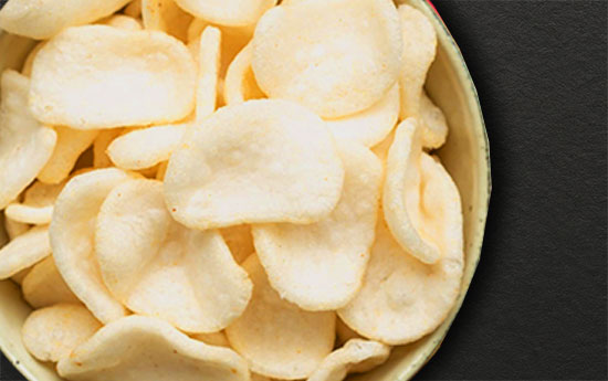 Crispy waffle-cut baskets piled high with either spicy prawns or melted cheese.