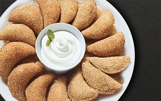Soft dahi kebabs wrapped in shredded kunafa pastry, fried crisp and served with rose syrup.