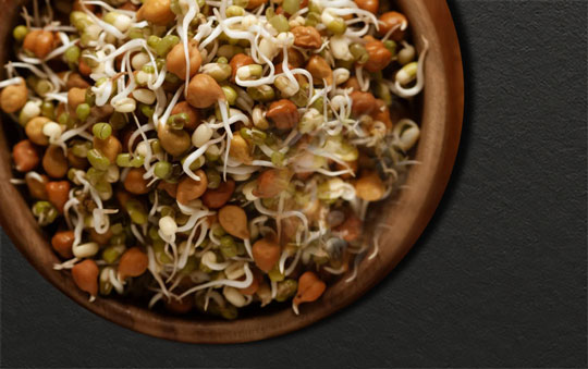 Sautéed soybean sprouts seasoned with coarse salt, cracked black pepper, and garlic.