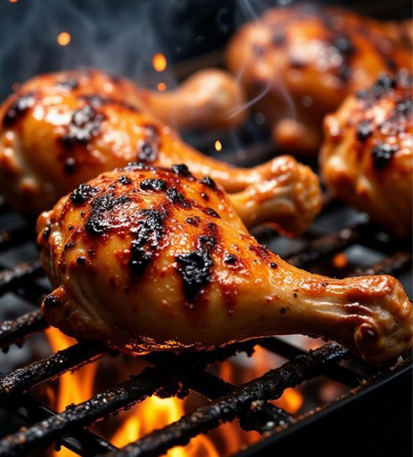 Spicy peri-peri–marinated chicken roasted over coals, bursting with tangy chili heat.